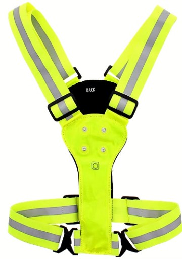- kamizelka posiada 4 białe diody led z przodu oraz 4 diody led z tyłu czerwone