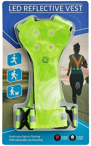 - kamizelka posiada 4 białe diody led z przodu oraz 4 diody led z tyłu czerwone