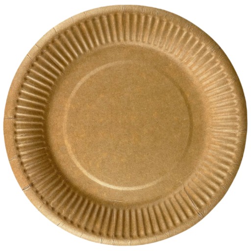 Okrągłe biodegradowalne talerze od Ecoserve w kolorze brązowym wspaniale sprawdzą się na imprezie oraz grillu.