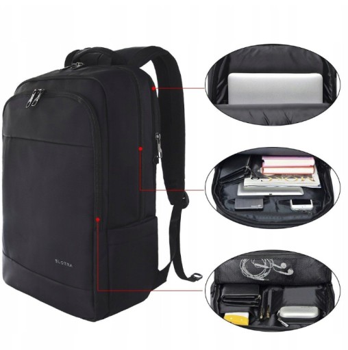 - Organizer: Ukryte przegródki na tablet, portfel, telefon komórkowy, klucze i długopisy. Elastyczne boczne kieszenie na butelki z siatki, dostęp do słuchawek z boku plecaka.