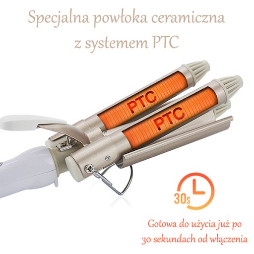 Lokówka posiada 3 rolki pokryte powłoką ceramiczną pracującą w systemie PTC.