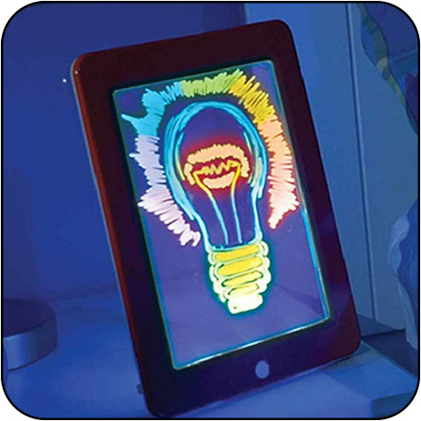 Urządzenie posiada przeźroczystą tablicę do rysowania z możliwością jej podświetlenia światłem LED w 6 kolorach.