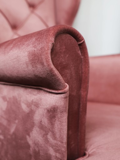 ✮Fotel w kolorze różowym został wykonany w tkaninie MONOLITH 63, nóżki są w kolorze naturalnym.