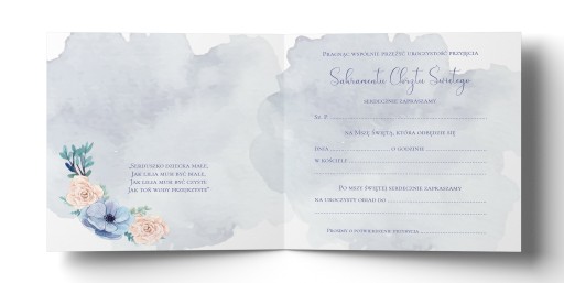 W zaproszeniach znajduje się tekst do samodzielnego uzupełnienia. Personalizacji podlega jedynie imię dziecka.