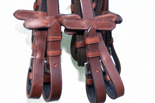 Wodze parciane ze stoperami roz. Full Wodze wykonane z najwyższej jakości taśmy parcianej wykończenia ze skóry bydlęcej bardzo miękkiej i miłej w dotyku .Sprzączki wykonane ze stali szlachetnej nierdzewnej.Zapraszam do zakupu.