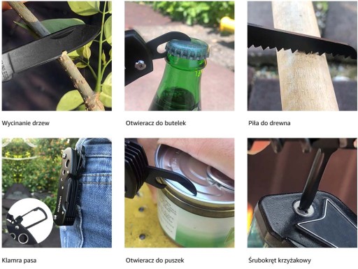 Niezależnie od tego, czy jesteś w domu,na biwaku,wybrałeś się na ryby czy też planujesz pieszą wycieczkę nasz nóż wielofunkcyjny zapewni Ci szerokie możliwości. Możesz używać wielofunkcyjnych narzędzi do radzenia sobie w różnych sytuacjach, takich jak cięcie gałęzi, piłowanie drewna, montaż namiotu,otwieranie konserwy lub butelek i wiele innych.