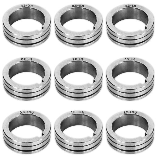 Rolka prowadząca U-kształtna do aluminium podajnika 2-rolkowego 2RA stosowana w urządzeniach spawalniczych.