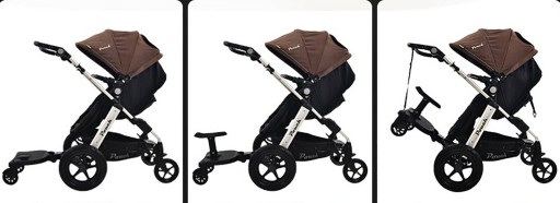Odpowiedni dla rodzin z dwójką dzieci, z jednym dzieckiem śpiącym w wózku i drugim siedzącym/stojącym na pedałach.