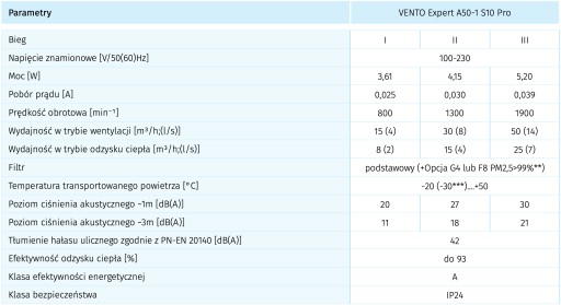 - Wydajność w trybie wietrzenia - 15÷50 [m3/h]