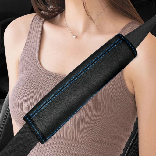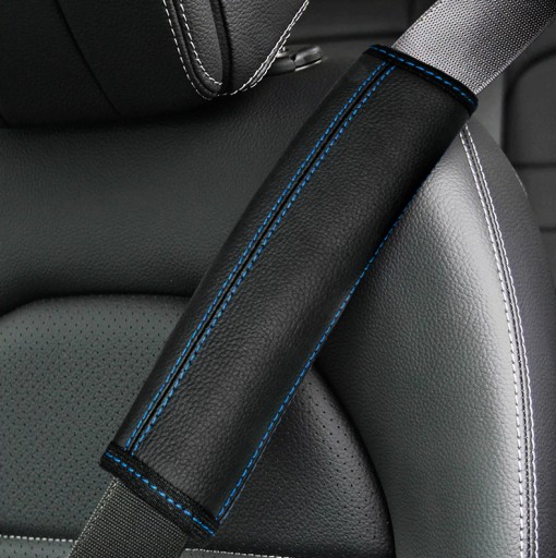 Nakładki wykonane są z eleganckiego materiału typu EKO SKÓRA, przeszyte mocnymi nićmi tapicerskimi a na ich brzegach znajduje się lamówka. Wypełnione są miękką warstwą gąbki poprawiając komfort podróżowania sprawiając, że pas nie wbija się w ciało.