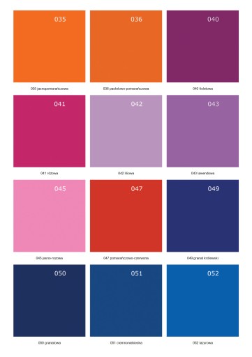 Wzornik kolorów w jakich możesz zamówić produkt: