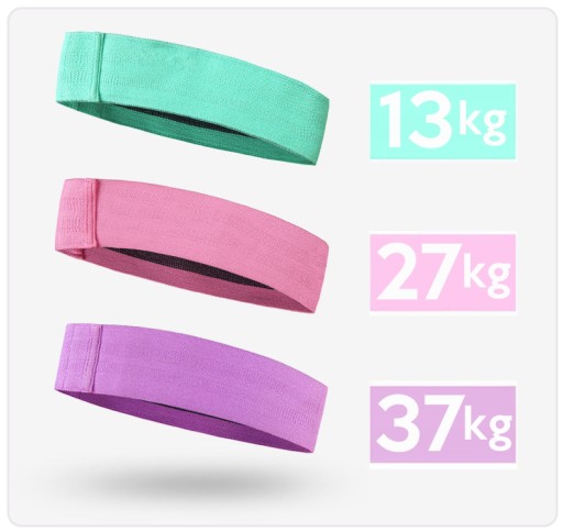 Każdy z kolorów gum reprezentuje inną masę oporu, który taśma stawia ciału podczas ćwiczeń. Podczas treningu możesz wykorzystywać kilka gum jednocześnie, zwiększając w ten sposób siłę z jaką ćwiczysz.