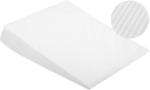 Klinowy kształt poduszek to solidna podpora, umożliwiająca najbardziej optymalną pozycję dziecka z lekko uniesionymi ramionami i główką.