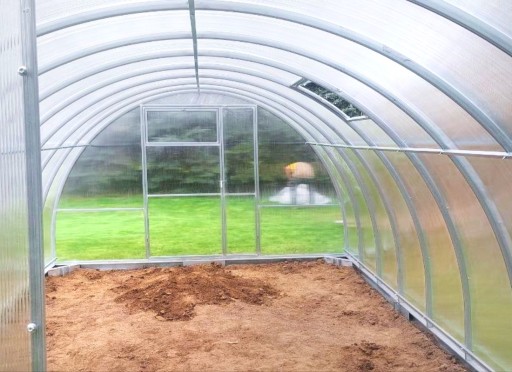 - Szklarnia pokryta jest komórkowym poliwęglanem odpornym na promieniowanie UV.