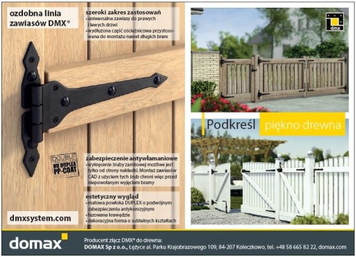 Ozdobny zawias zapewnia estetyczne i profesjonalne łączenia różnych elementów konstrukcyjnych, przede wszystkim drewnianych.
