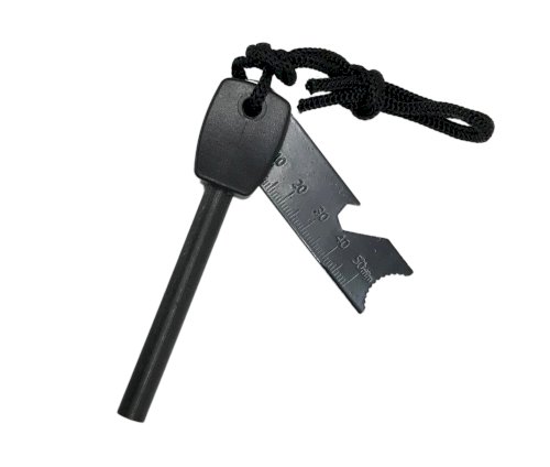 Krzesiwo do szybkiego rozpalenia ognia w każdych warunkach. Zapalarka Fire Starter składa się z pręta (iskrownika) z dodatkiem magnezu spalającego się w bardzo wysokiej temperaturze oraz blaszki (tarnika) do krzesania iskier. Zestaw połączono linką paracord.