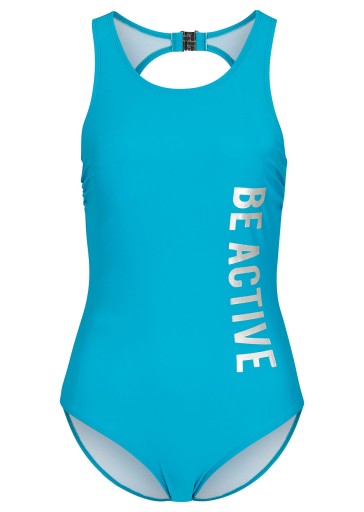 Kostium kąpielowy w sportowym stylu z modnym nadrukiem.