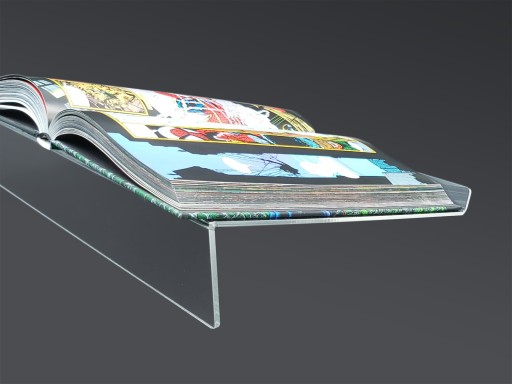 Stojak z przezroczystej plexi o grubości 3 mm pozwala na stabilne umieszczenie laptopa lub książki, a podwyższenie 7 cm pozwala na bardziej komfortowe użytkowanie.