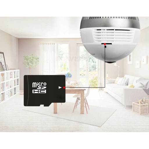 Kamera-żarówka LED o gwincie E27 zachowuje się jak zwykła żarówka dająca światło o mocy 6W (porównywalna do 50W żarówki żarowej), lecz ma dodatkowe opcje zabezpieczające Twoje miejsce zamieszkania.