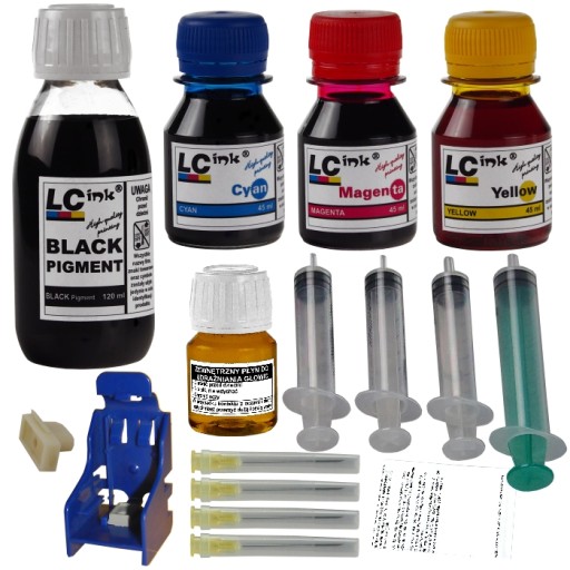 TUSZ CZARNY 120ML + TUSZ KOLOROWY 3X45ML + KLIP + AKCESORIA + PŁYN DO UDRAŻNIANIA GŁOWIC