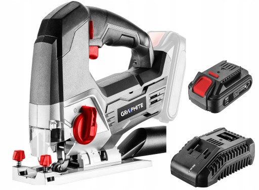 Wyrzynarka GRAPHITE, współpracująca z akumulatorami 18V Li-Ion GRAPHITE Energy+. Urządzenie przeznaczone jest do precyzyjnego i szybkiego cięcia drewna i metalu, o maksymalnej grubości odpowiednio 80 mm i 10 mm. Układ regulacji obrotów pozwala na pracę z prędkością od 0 do 2400 suwów na minutę. Wyrzynarka posiada aluminiową stopę z regulacją kąta nachylenia w zakresie od 0° do 45° w prawo i lewo. Posiada funkcję 3-stopniowej regulacji wielkości ruchu wahadłowego, pozwalającą na zwiększenie szybkości cięcia w wybranych materiałach. Elektronarzędzie wyposażono w beznarzędziowy system wymiany brzeszczotów oraz diodę LED, oświetlającą miejsce pracy. Brzeszczot wyrzynarki (skok 25 mm) został zabezpieczony przezroczystą osłoną, wykonaną z wytrzymałego poliwęglanu. Uchwyt roboczy urządzenia przystosowano do pracy z brzeszczotami typu T. Rękojeść wyposażono w wygodny włącznik z blokadą chroniącą przed przypadkowym uruchomieniem, a miejsce chwytu pokryto antypoślizgowym materiałem dla większego komfortu oraz bezpieczeństwa. Aby usprawnić usuwanie pyłu z powierzchni obrabianego materiału, wyrzynarka została wyposażona w układ zdmuchiwania i odprowadzania pyłu. W zestawie z wyrzynarką znajduje się prowadnica równoległa.
