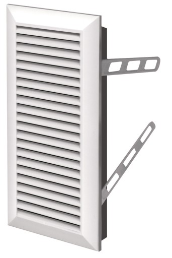 Kratka wentylacyjna z siatką Awenta Classic T63 100x240mm z tworzywa biała. Montaż na uchwyty montażowe do zatopienia w kleju lub kołki.