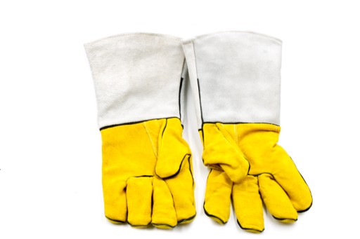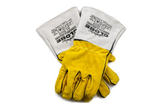 Rękawice ze skóry bydlęcej, specjalnie wyściełane i wzmocnione, aby chronić operatorów podczas spawania.Szwy kevlarowe.