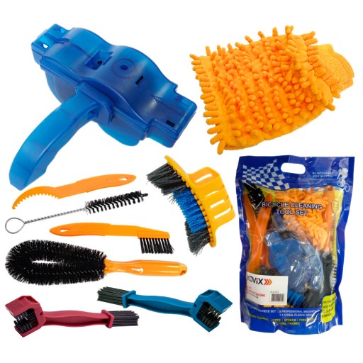 Zestaw Bicycle Cleaning Tool Set zotał zaprojektowany z myślą o codziennej potrzebie czyszczenia motocykla oraz roweru. Wszelkie narzędzia pomogą skutecznie wyczyścić i wyeliminować wszelkie zabrudzenia w każdym zakątku pojazdu. Połączenie zestawu narzędzi z np. specjalnymi preparatami czyszczącymi sprawią, że na nowo pokochasz swój jednoślad.