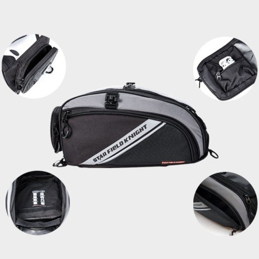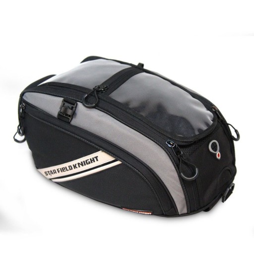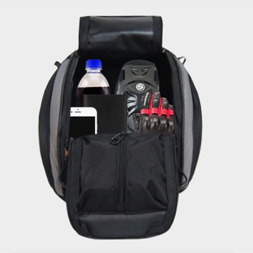 Prosta i stylowa torba na bak o dużej pojemności,Jest zabezpieczony magnesami i paskami,Świetne do motocykli z metalowymi zbiornikami paliwa,W zestawie wodoodporny osłona, który chroni przedmioty przed zamoczeniem podczas jazdy w deszczu