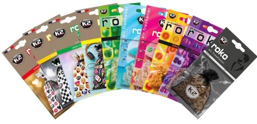 Seria kompozycji zapachowych K2 Roko wbija się w zmysły jak melodia ulubionej piosenki. Pobudza i napełnia energią. Motywuje do działania. Frywolna pomarańcza, soczyste zielone jabłko, słodki Sweet Candy, apetyczna Blueberry czy mocna kawa. Każda z tych kompozycji napełni Cię wigorem i na stałe zagości na playliście Twojego samochodu.