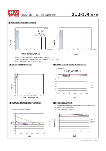 - Certyfikaty bezpieczeństwa: UL8750(type”HL”), UL879,CSA C22.2 No. 250.13-12; ENEC EN61347-1, EN61347-2-13 independent, EN62384; GB19510.1,GB19510.14; EAC TP TC 004; J61347-1(H29), J61347-2-13(H29),KC61347-1,KC61347-2-13,IS15885(Part2/Sec13)(for XLG-150I type only); NOM-058-SCFI-2017