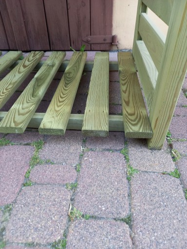 Nowa - nie wymaga dodatkowego malowania w celu zabezpieczenia drewna. W zależności od stopnia ekspozycji drewna na szkodliwe warunki zewnętrzne, zaleca się ponowną impregnację po upływie 1-2 lat dowolnym środkiem do impregnacji drewna na zewnątrz. W celu nadania jej innego koloru już teraz, można ją we własnym zakresie dodatkowo pomalować. Każdy ciemniejszy kolor, pokryje jasno-zielony odcień po impregnacji.