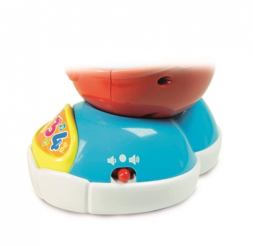 - Ćwiczy sprawność manualną małych rączek: obrotowe koła, przyciski.