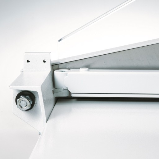 Jedna z najbardziej wydajnych obcinarek marki IDEAL. Materiał mocowany jest bardzo skutecznym, wspomaganym dociskiem ręcznym i ustawiany pod nożem za pomocą ruchomej półki z prowadnicą ślimakową. Wszystkie elementy osadzone są w stabilnym metalowym korpusie urządzenia. Urządzenie te cieszy się doskonałą opinią wszystkich użytkowników.