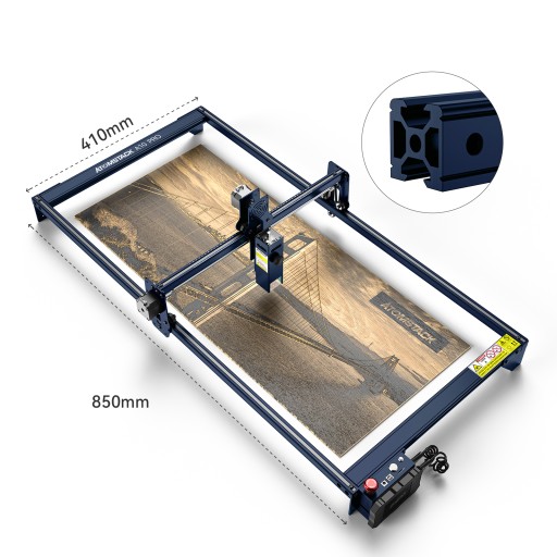 Laserowo grawerująca maszyna grawerująca ATOMSTACK A10 Pro ma moc lasera 50W i moc wyjściową lasera optycznego 10-11W oraz prędkość grawerowania 11000mm/min. Konstrukcja z anodyzowanego stopu aluminium sprawia, że maszyna jest bardziej wytrzymała i trwała. Solidna konstrukcja pozwala grawerowi zachować precyzję nawet podczas szybkiej pracy.