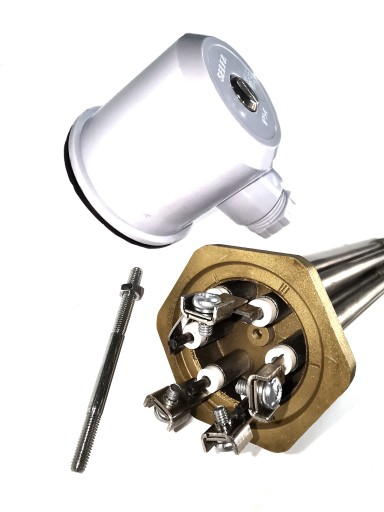 Grzałka do wytwornicy pary zbudowana jest z trzech rurkowych elementów typu U, wlutowanych w calowy korek. Płaszcz rurkowej grzałki elektrycznej wykonany ze stali nierdzewnej / kwasoodpornej.