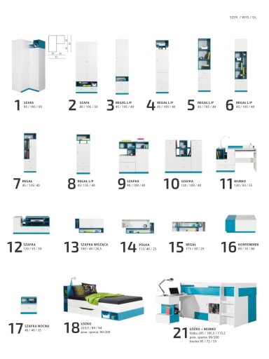 Meble młodzieżowe GOBI to prawdziwa nowość wśród mebli systemowych przeznaczonych dla młodszych odbiorców. Funkcjonalne i nietuzinkowe rozwiązania błyskawicznie spełnią oczekiwania najbardziej wymagających klientów jakimi są nasze pociechy, a ciekawa kolorystyka sprawi, że będą wizytówka każdego młodzieżowego pokoju. Elementy systemu GOBI można komponować według własnego uznania.