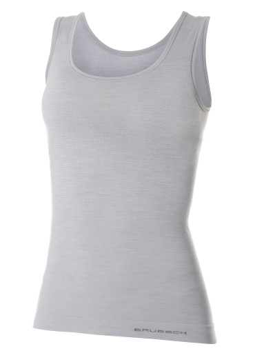Brubeck TA10170 to bezrękawnik damski wykonany z wełny merino. Włókno wełny merynosów jest trzy razy cieńsze od ludzkiego włosa i ugina się w kontakcie ze skórą, dzięki czemu merino nie drapie i nie gryzie. Nie przejmuje nieprzyjemnych zapachów i jest antybakteryjna. Sprawdzi się do każdego typu skóry i będzie idealnym rozwiązaniem dla alergików, ponieważ posiada właściwości hipoalergiczne. Bezszwowa konstrukcja nie pozwala na powstawanie otarć i podrażnień, niezależnie od wykonywanych czynności. Koszulka jest elastyczna i dopasuje się do kształtu sylwetki, podkreślając Twoją kobiecość.