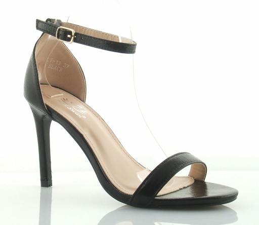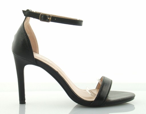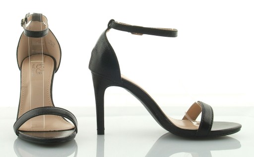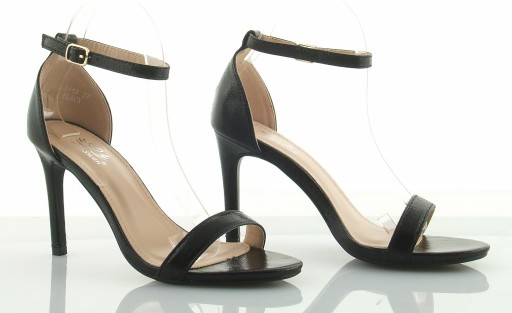Atrakcyjne sandały na szpilce, z paskiem wokół kostki i piętką, czarne.