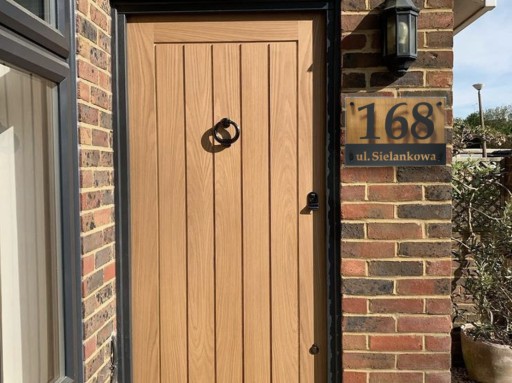 Budując dom coraz częściej decydujemy, aby wykończyć go w naturalnym stylu z użyciem drewnianych elementów takich jak stolarka okienna, drzwi, poszycie elewacji. Tak zwana nowoczesna stodoła cieszy się dziś ogromnym zainteresowaniem, a właśnie ten projekt jest najczęściej wykańczany drewnianymi dodatkami. Dla takich właśnie projektów przygotowaliśmy drewnianą tablicę adresową z numerem domu. Koncepcja ten tablicy polega na tym, że przy samej ścianie znajduje się płyta MDF pokryta okleiną z dębu naturalnego. Kolejna warstwę oddzieloną czarnymi tulejami dystansowymi stanowi bezbarwna płyta z plexi. Na tejże płycie przyklejamy wycięty z czarnej, matowej plexi numer i adres Państwa domu. Całość tworzy fenomenalny efekt 3d. Tabliczka mimo, że drewnem nawiązuje do natury, w swej konstrukcji wygląda bardzo nowocześnie i przeznaczona jest również do nowoczesnych i modnych domów.
