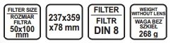 Wymiary filtra 50mm x 100 mm, stopień zaciemnienia: 8.