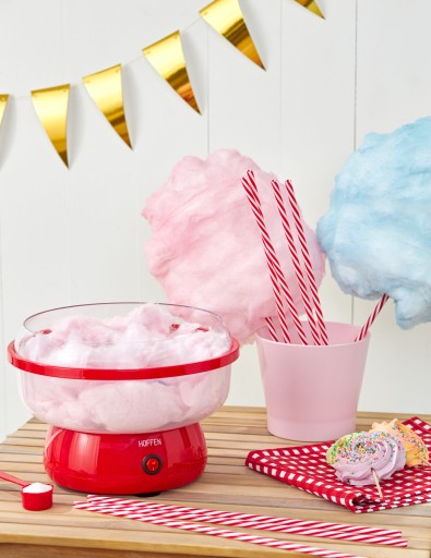 Zaproś całą rodzinę do smakowitej zabawy z urządzeniem do waty cukrowej marki Hoffen. Z łatwością przygotujecie słodki przysmak uwielbiany przez wszystkie dzieci, ciekawie spędzając czas. Jeśli do cukru dodacie barwnik spożywczy, wyczarujecie efektowną watę kolorową.