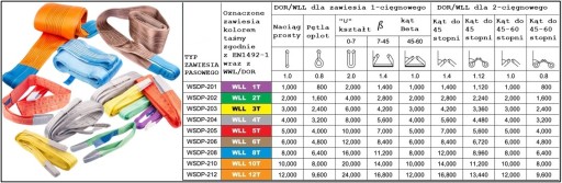 Zawiesie pasowe dwuwarstwowe szyte z poliestru /duplex/, obustronnie zakończone pętlami wzmocnione trwałym obszyciem. Pętle składane wzmocnione w standardzie, ale również dostępne z pętlami płaskimi. Odporne na temperatury od -40 ° C do +100 ° C Materiał: 100% poliester ze współczynnikiem bezpieczeństwa 7:1, z oznakowaniem kolorem i ilością czarnych przeszyć na zawiesiu zgodnie z normą. Oznaczenie zawiesia CE.