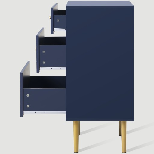 komoda komoda z 3 szufladami, certyfikat FSC®, kredens wysoki do sypialni i wszystkich pomieszczeń mieszkalnych, granatowy-W89/S75/G40 cm
