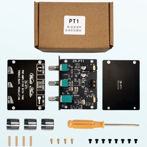 Wzmacniacz wymaga złożenia, tzn. skręcenia śrub i założenia gałek.