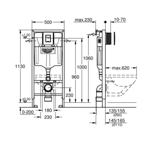 Stelaż podtynkowy WC GROHE Solido 4w1 zawiera wszystko, czego potrzebujesz podczas projektowania toalety.