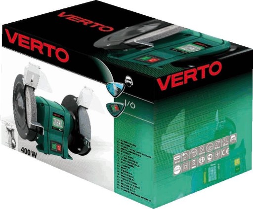 Szlifierka stołowa VERTO 350 W (nr. Ref. 51G427) o średnicy tarcz 200 mm. Przeznaczona do lekkich prac w małych warsztatach oraz samodzielnej działalności amatorskiej. Doskonale nadaje się do ostrzenia narzędzi takich jak wiertła i dłuta, istnieje możliwość zamontowania drucianych szczotek tarczowych. Posiada solidną obudowę z osłonami przeciwodpryskowymi. Maksymalna prędkość obrotowa tarczy bez obciążenia wynosi 2950 obr./min. Szlifierka dostarczana jest w zestawie z 2 tarczami szlifierskimi A36 i A60. Zgodność z europejskimi standardami bezpieczeństwa zapewnia certyfikat CE. Marka VERTO oferuje asortyment elektronarzędzi i akcesoriów dla każdego majsterkowicza.