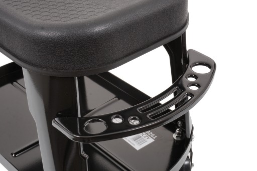 W dolnej części tego stołka znajdziesz półkę na narzędzia - możesz tam odłożyć klucze, przedłużki, nasadki i tym podobne.