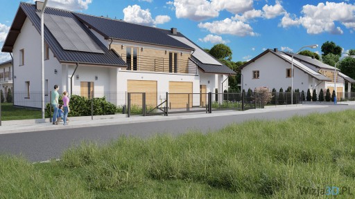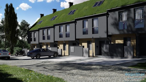 - Wykonanie 4 zdjęć zabudowy bliźniaczej. Na przykład zabudowa posiadająca cztery klatki schodowe do wysokości jednego piętra.