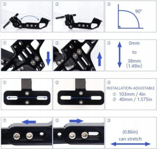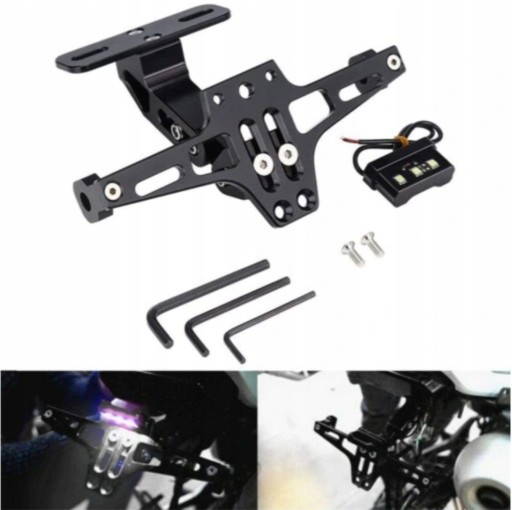 Pasuje do: Harley, Suzuki, Yamaha, Honda, Victory, Kawasaki, Indian, Bsa, Triumph, April, Vespa i większości innych modeli z przewlekanymi wspornikami tablicy rejestracyjnej.